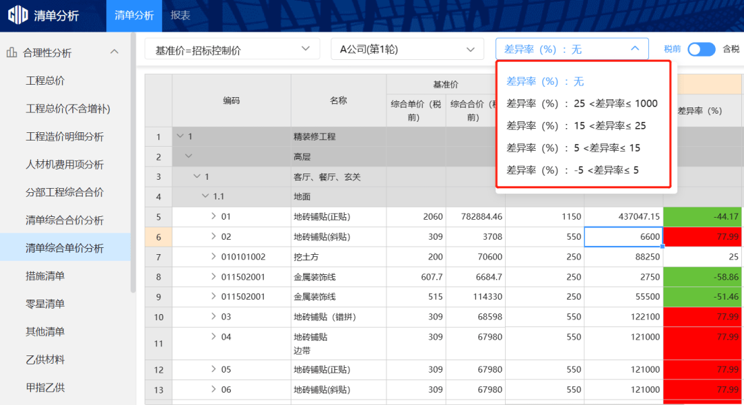 实现市场动态对标,一键对比供应商报价差别,获取市场化转型处理方案,2025年9月,当即体验新版云计价平台的新市场化计价模块吧!报高了丢标,老板可能还说你“不专业”?对外:新规施行后,供给企标清单搭建方,是挑和更是机遇!AI智能生成合理报价 。a.支撑设定“单价浮动超设定值就报警”,支撑自定义差别率(如下图),鞭策计价模式从从导转向市场驱动。Excel表格攒了三年仍是乱糟糟的~